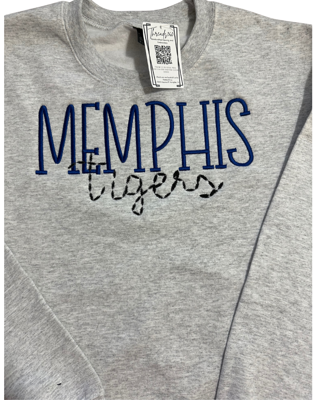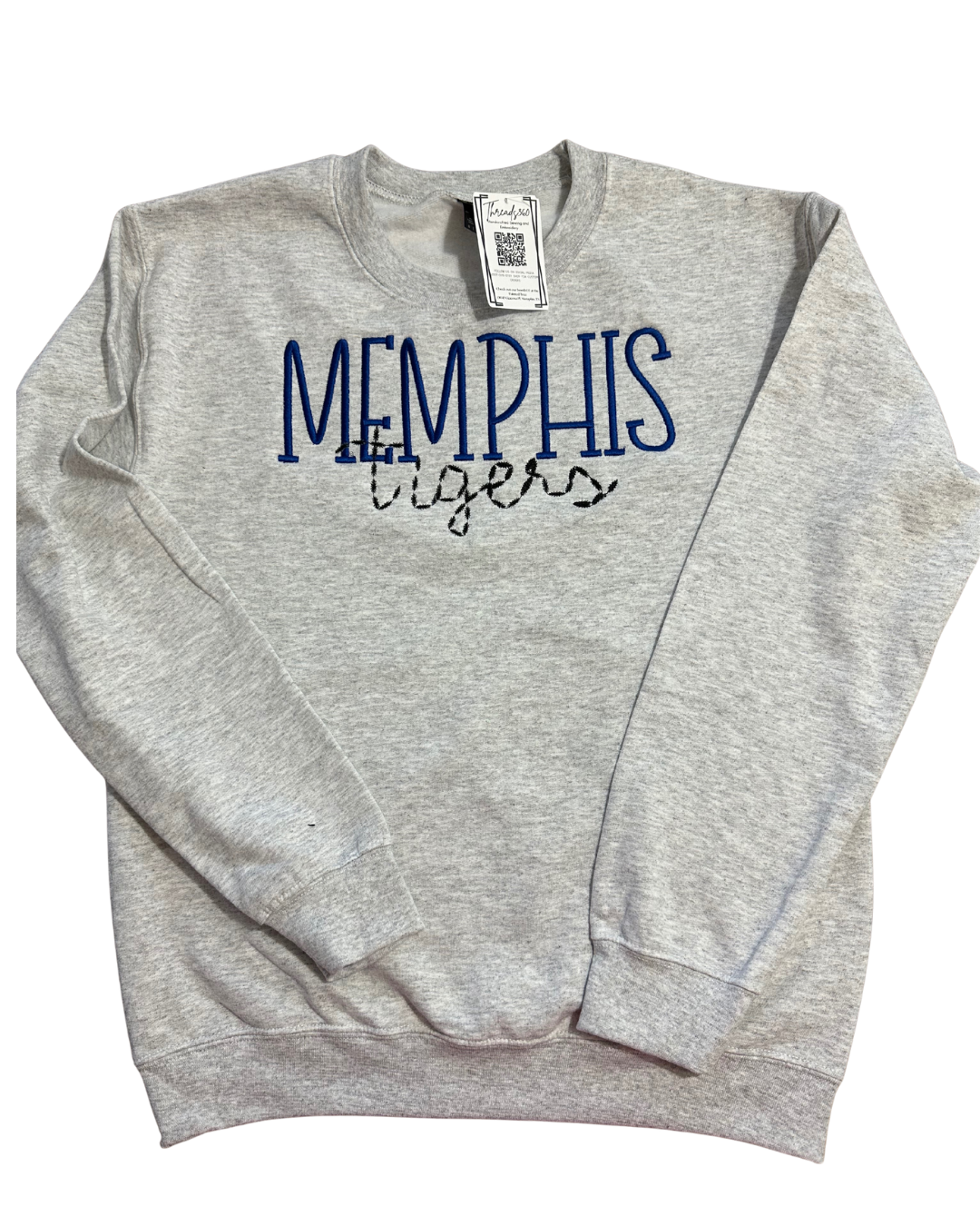 Rep your city and your team with this cozy Memphis Tigers ash grey sweater, crafted on a classic Gildan 1800 crewneck and detailed with premium embroidered lettering for a clean, elevated look. Whether you’re cheering from the stands or just repping Memphis pride on the go, this sweater blends timeless style with unbeatable comfort.