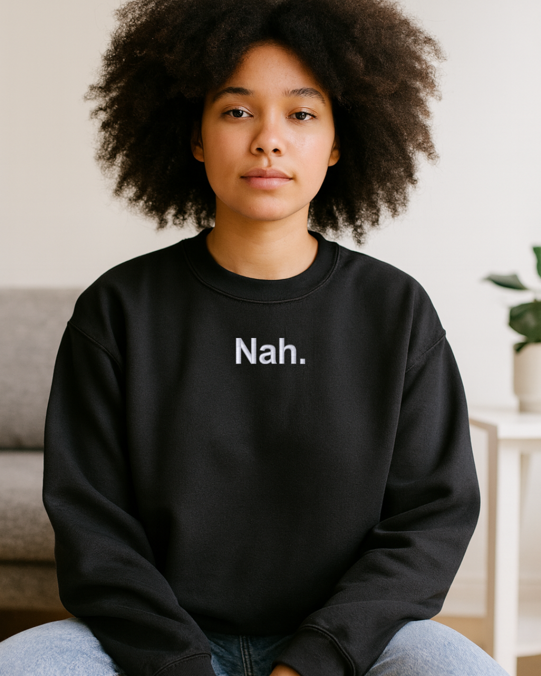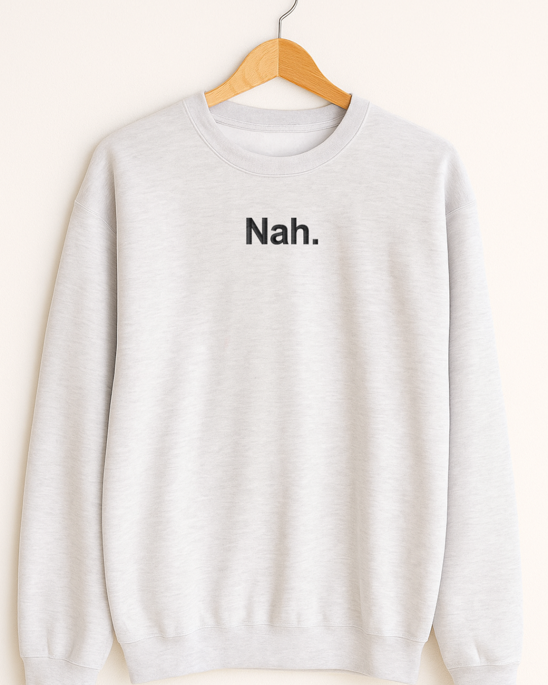 Available in classic Ash Grey and Jet Black, these ultra-comfortable crewneck sweatshirts feature short, punchy phrases like: