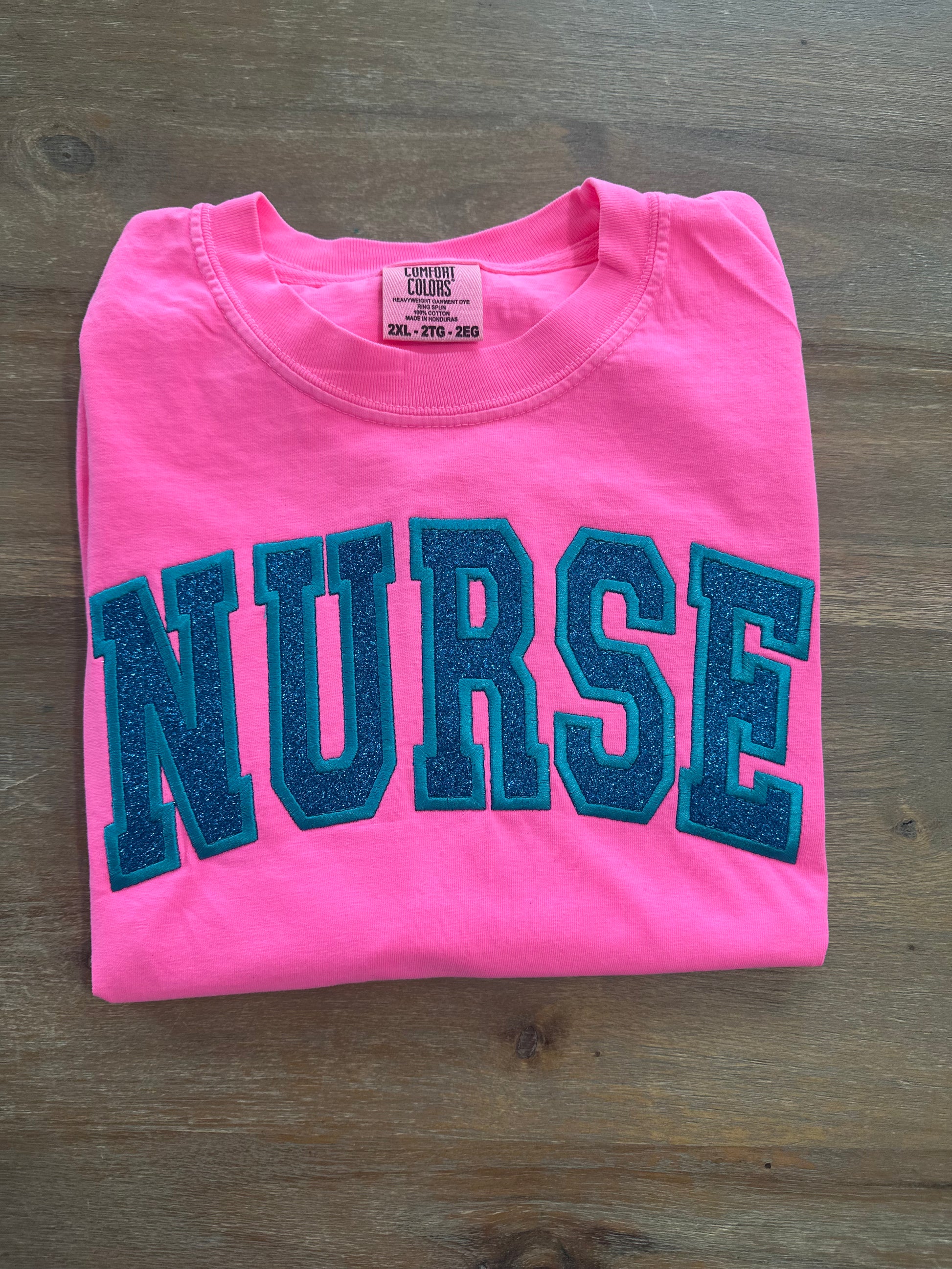 Embroidered Glitter "NURSE" Comfort Color Shirt