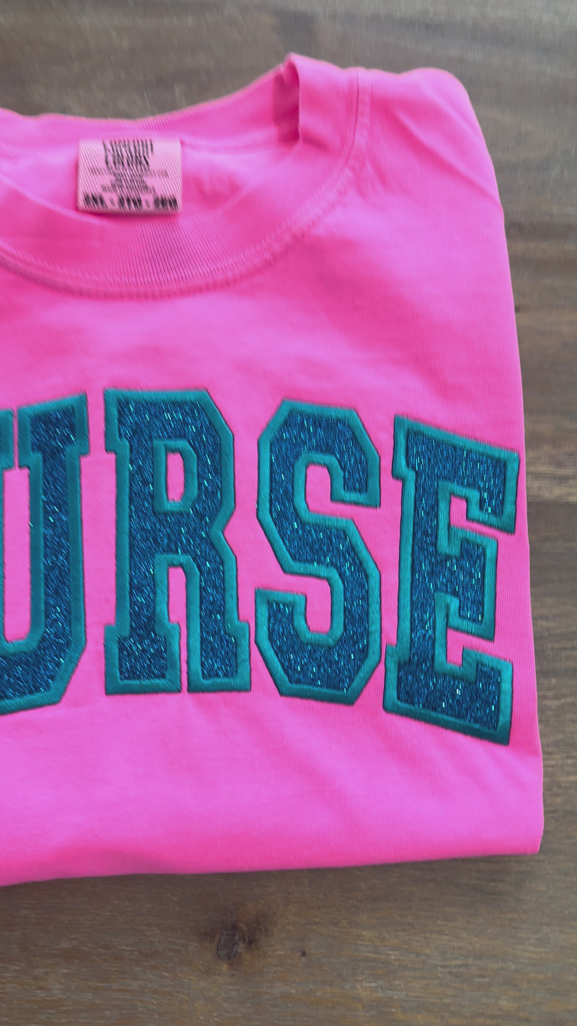 Bright, bold, and full of personality — These Comfort Colors shirt are made to stand out! Featuring the word “NURSE” embroidered in dazzling glitter vinyl, this shirt is a perfect blend of sparkle and strength, just like the professionals who wear it.